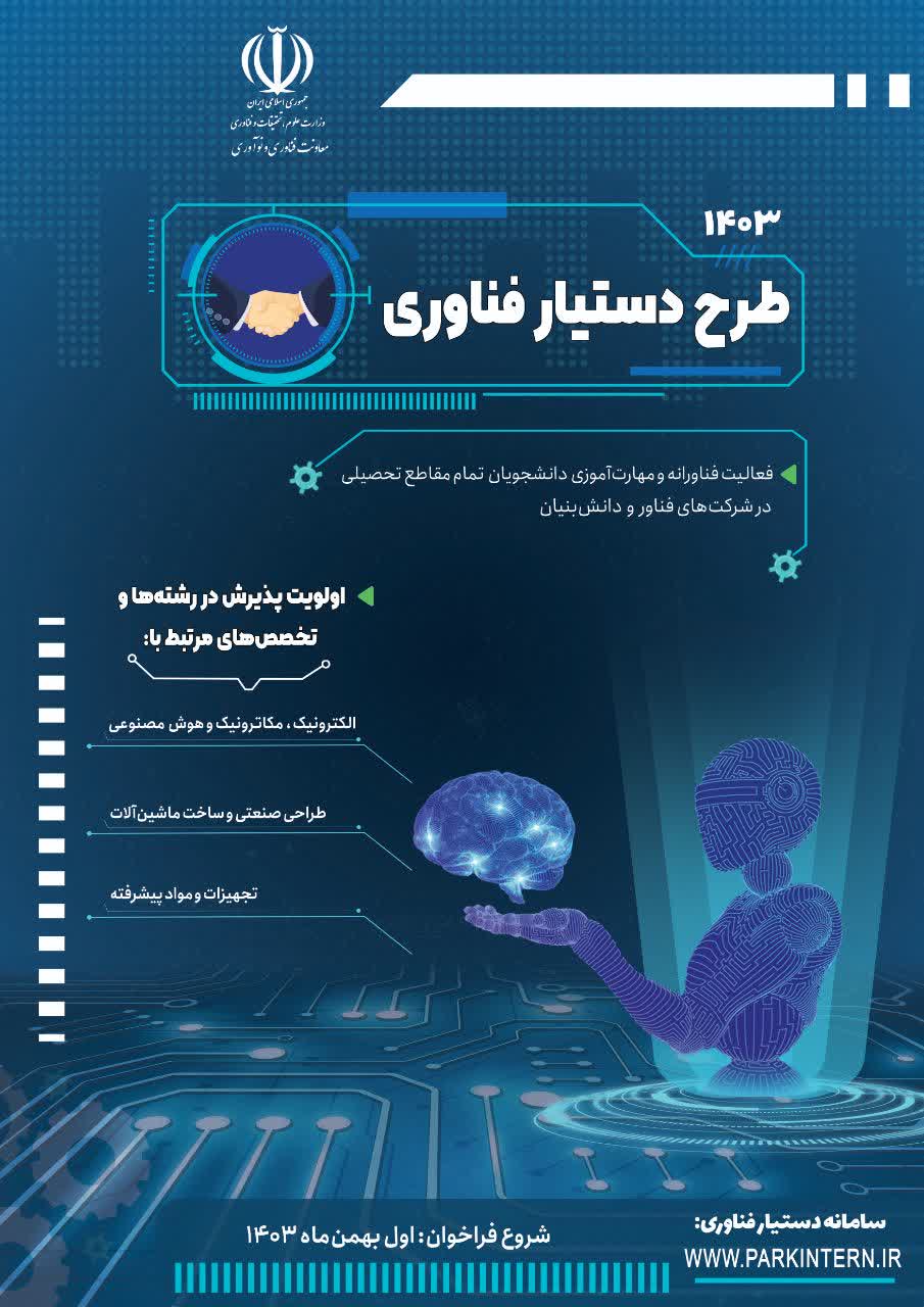 طرح دستیار فناوری به منظور بهبود توانمندی دانشجویان در کارآفرینی و کاریابی از طریق آموزش مهارت‌های مرتبط با رشته تحصیلی در معاونت فناوری و نوآوری وزارت عتف برنامه ریزی شده است.  این طرح بر اساس هدایت هدفمند آموزه های دانشجویان در راستای استفاده کاربردی و کسب تجربه عملی به منظور شکل گیری دانشگاه جامعه محور  و کارآفرین و ایجاد انگیزه و حس امید در دانشجویان و با هدف تربیت نیروی متخصص، تنظیم و برنامه ریزی شده است. در این طرح دانشجویان با حضور در شرکت های دانش بنیان و فناور مستقر در پارک های علم و فناوری طی یک برنامه ۶ ماهه هدفمند با محیط واقعی کسب و کار آشنا می شوند.