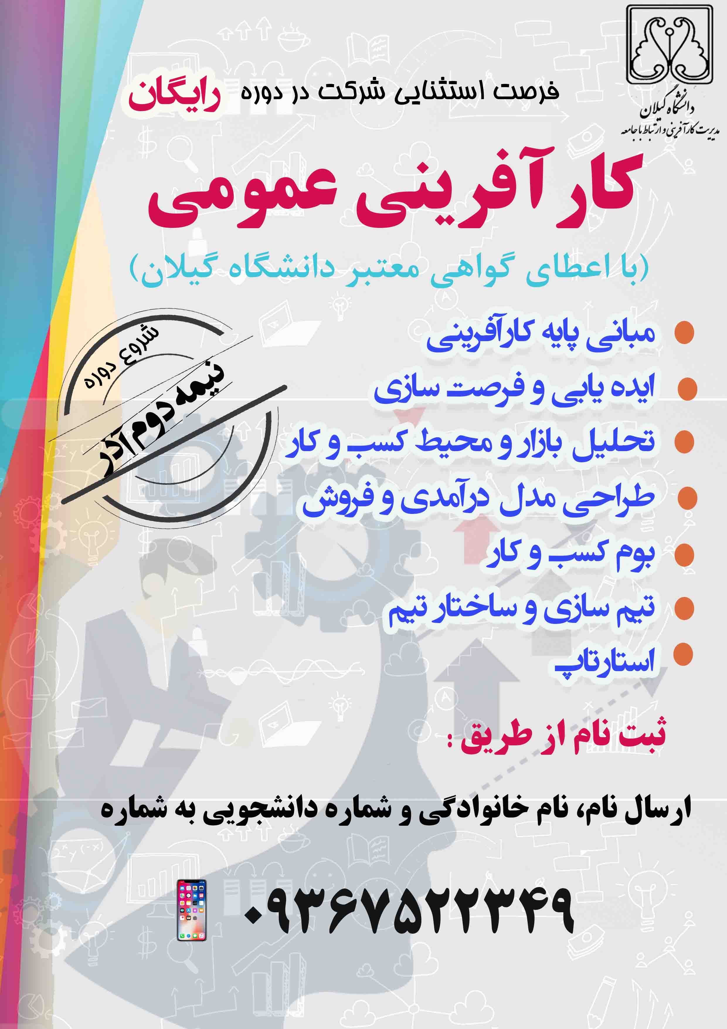 مدیریت کارآفرینی و ارتباط با جامعه در نظر دارد دوره های مهارت افزایی خود را در پاییز و زمستان سال جاری برگزار نماید.