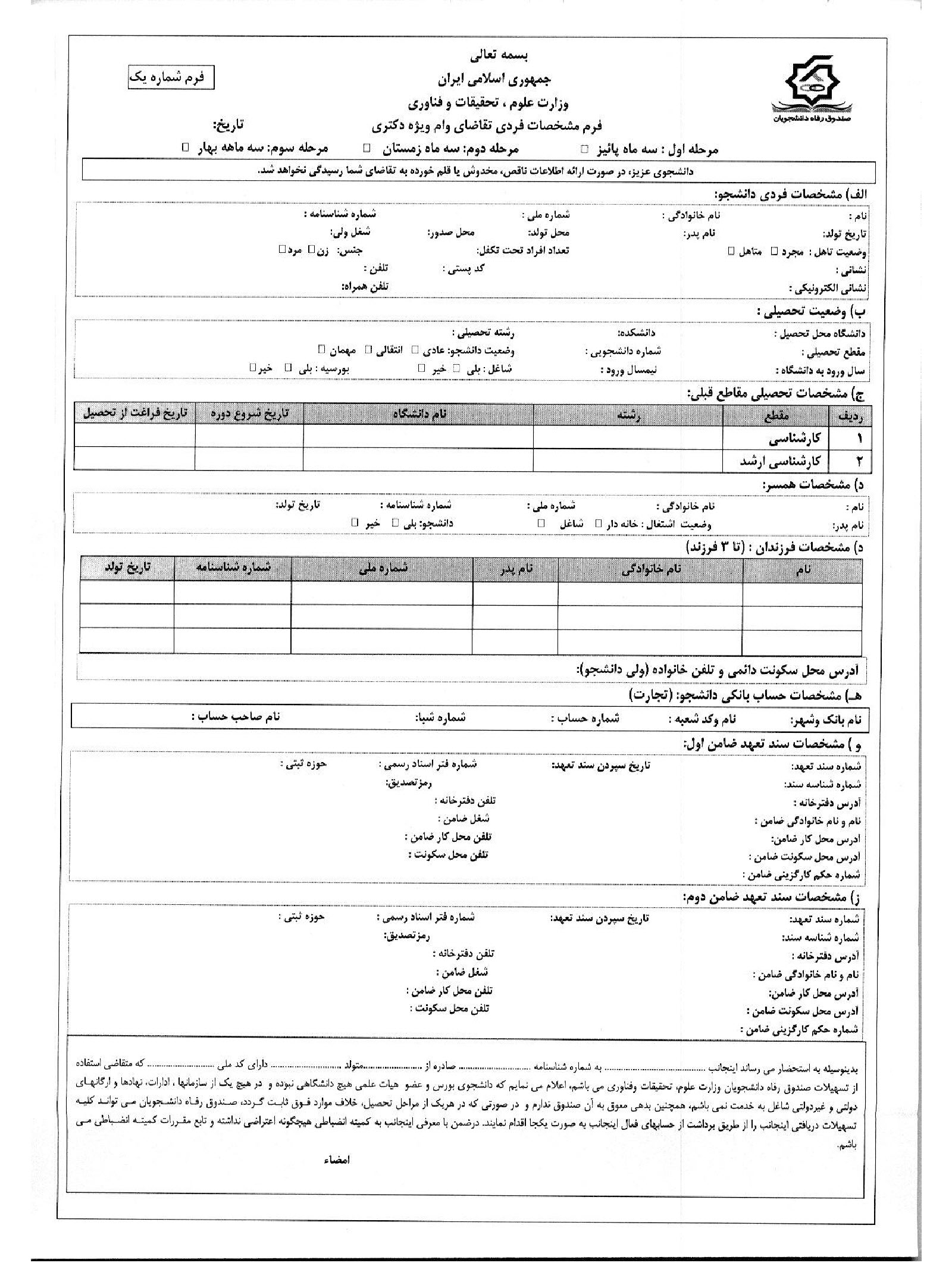 فرم های وام ویژه دکتری