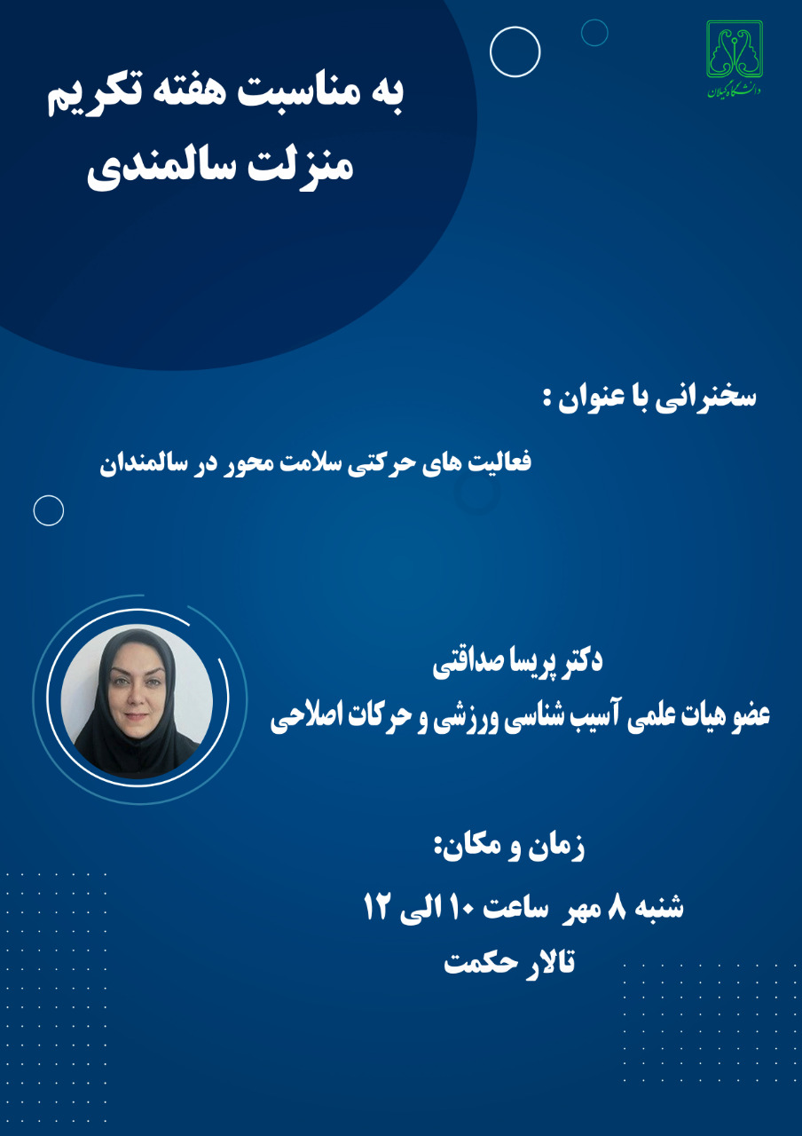 سخنرانی علمی به مناسبت هفته تکریم منزلت سالمندی