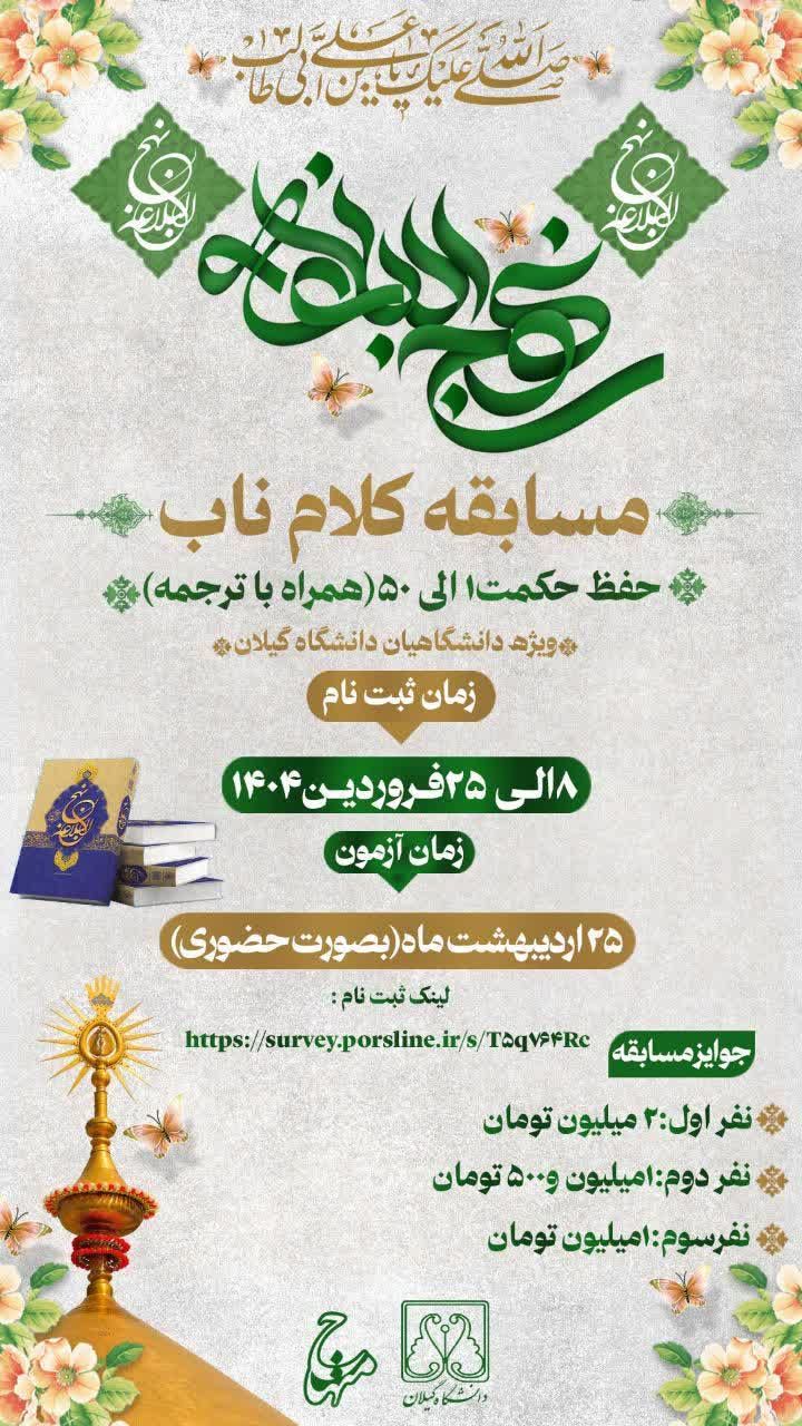 🔹حفظ حکمت ۱ تا ۵۰ نهج البلاغه (همراه با ترجمه) ویژه دانشگاهیان دانشگاه گیلان