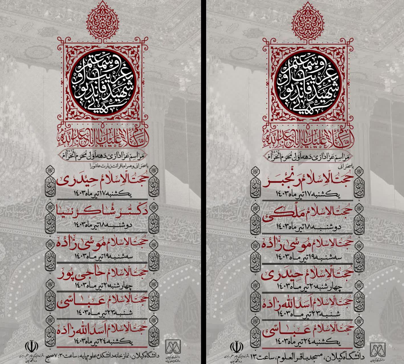 به اطلاع میرساند مراسم عزاداری دهه اول محرم در دانشگاه و همچنین مراسم زیارت عاشورا هر روز از ساعت ۷:۳۰ صبح در مسجد باقرالعلوم (ع) دانشگاه برگزار می شود.