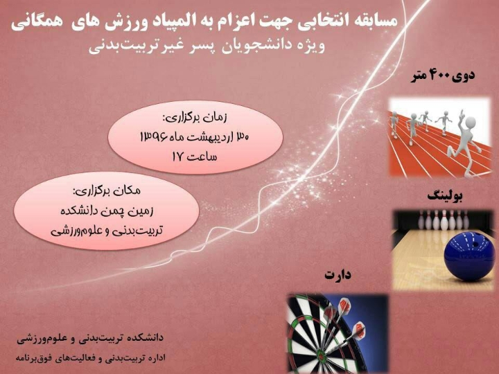 مسابقات انتخابی برای اعزام به المپیاد ورزش های همگانی دانشجویان در دو گروه دختران و پسران برگزار می شود.