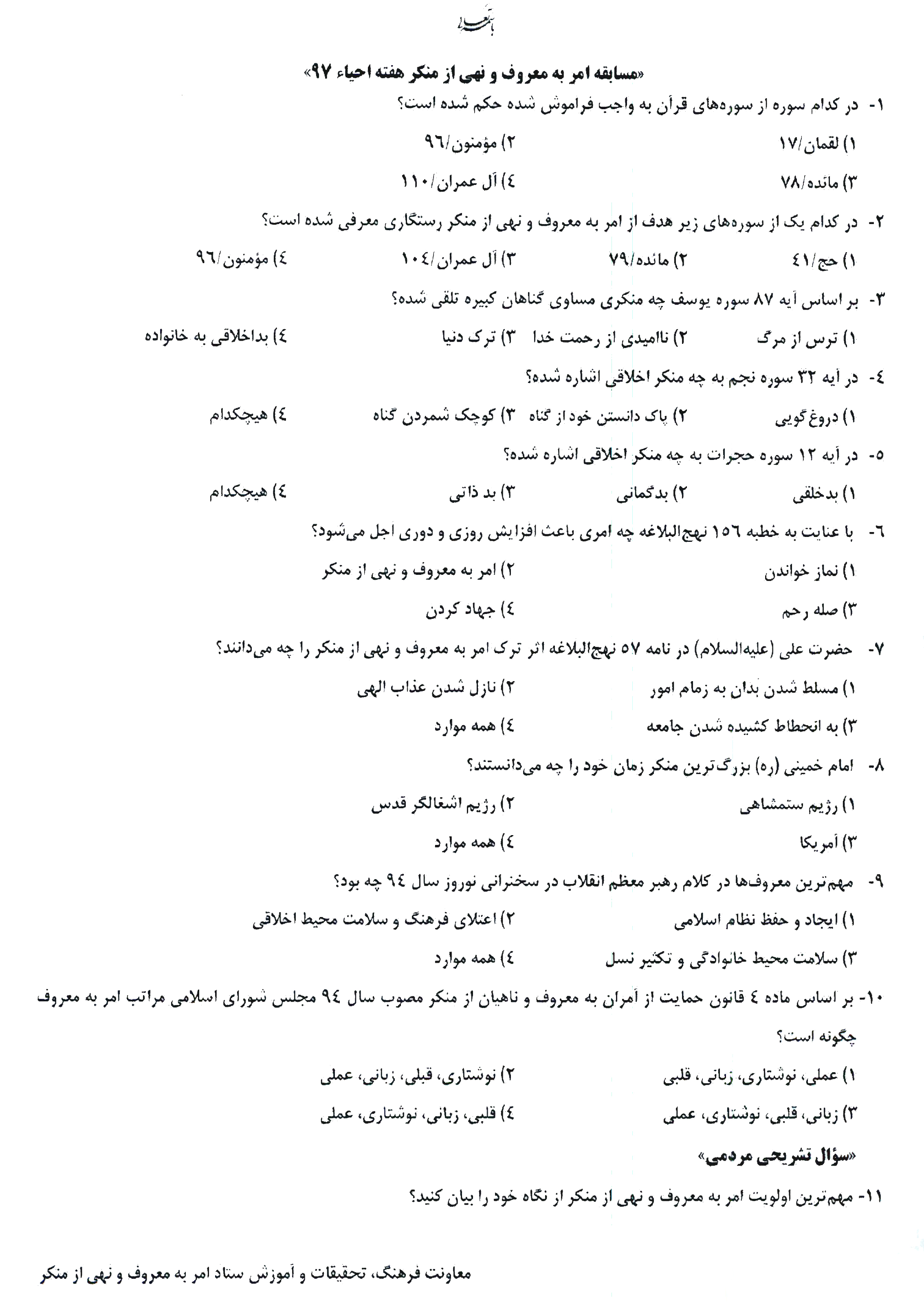 مسابقه فرهنگی هفته ی احیای امر به معروف و نهی از منکر