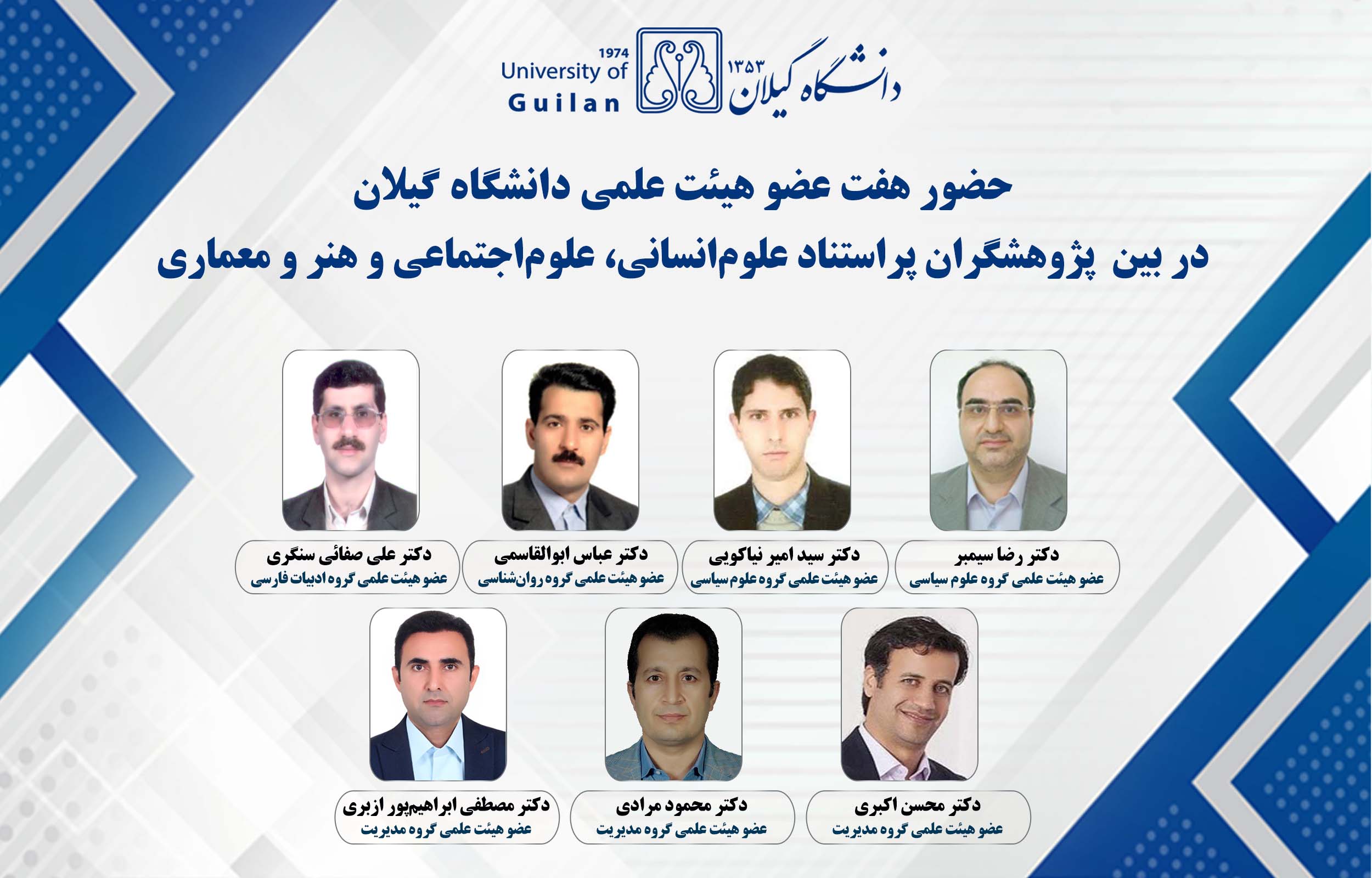 به گزارش معاونت پژوهش و فناوری دانشگاه گیلان و بر اساس اعلام مؤسسه استنادی و پایش علم و فناوری جهان اسلام (ISC)، هفت عضو هیئت علمی دانشگاه گیلان در بین پژوهشگران پراستناد علوم‌انسانی، علوم‌اجتماعی، هنر و معماری قرار گرفتند.