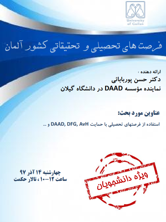 کارگاه آموزشی بهره مندی از فرصت های بورس تحصیلی کوتاه مدت آلمان (ویژه دانشجویان)