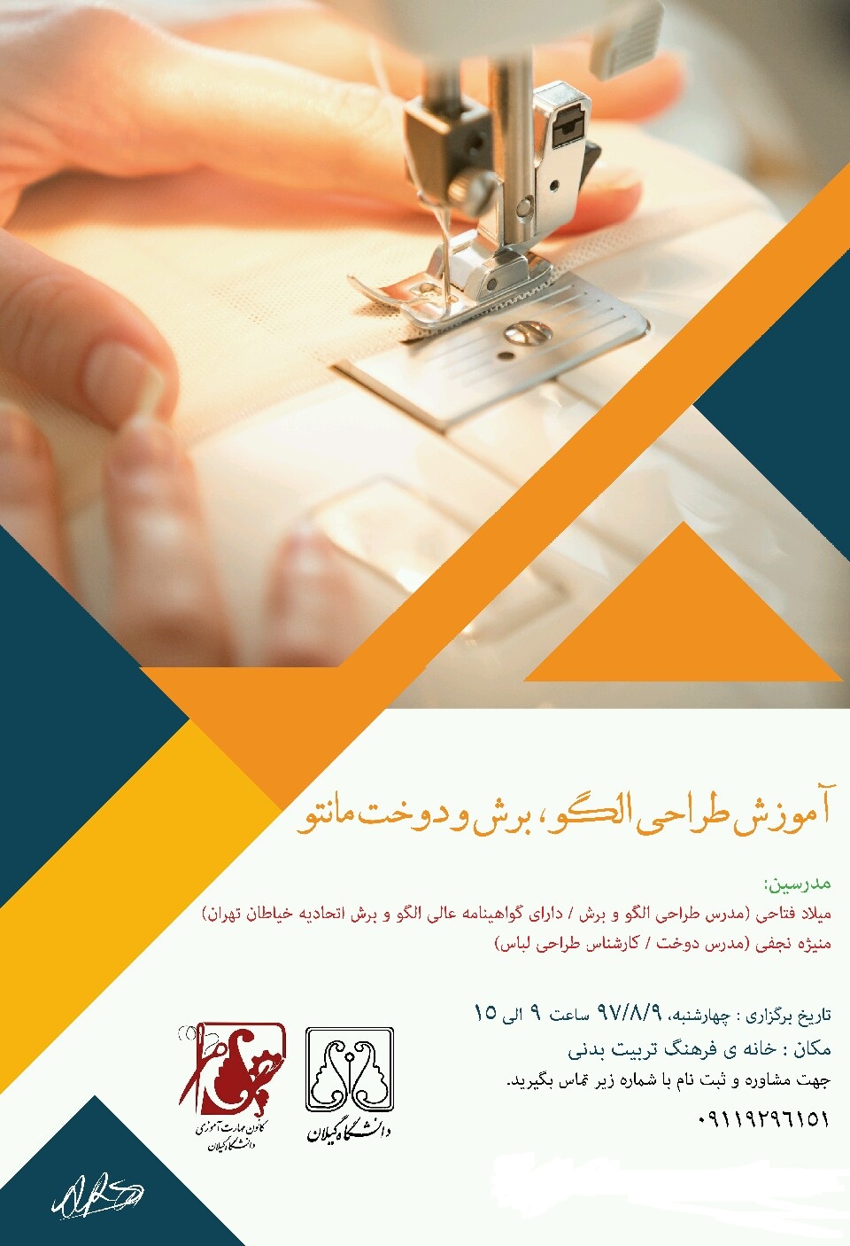کانون دانشجویی مهارت آموزی دانشگاه گیلان در نظر دارد کارگاه آموزشی طراحی الگو، برش و دوخت را ویژه دانشجویان دانشگاه گیلان برگزار نماید.