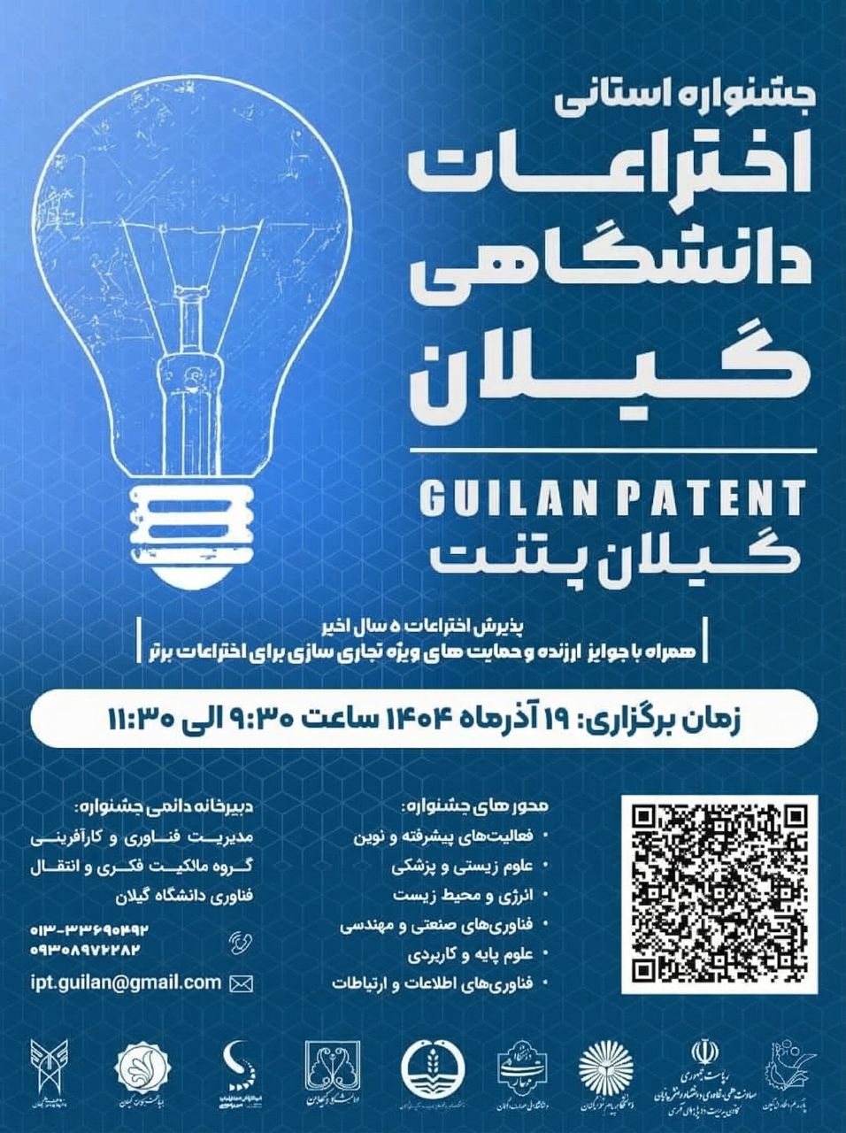 دکتر چائیبخش تصریح کرد: این رویداد با همکاری معاونت پژوهش و فناوری دانشگاه گیلان، دانشگاههای سراسر استان (دانشگاه علوم پزشکی گیلان، دانشگاه آزاد، دانشگاه ملی مهارت، دانشگاه پیام نور و ...)، پارک علم و فناوری گیلان و بنیاد ملی نخبگان برگزار میشود و با تمرکز ویژه بر جذب، توانمندسازی و معرفی اختراعات دانشگاهی میتواند نقش مهمی در شکلگیری یک اکوسیستم نوآوری پویا در سطح استان داشته باشد.