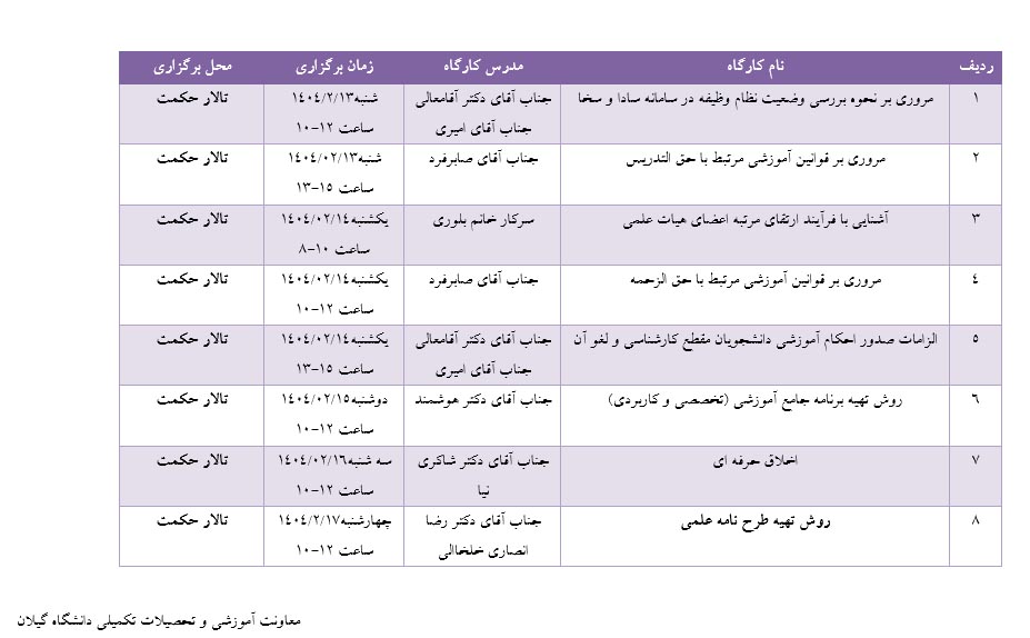 برگزاری دوره‌ها و کارگاه‌های دهه سرآمدی آموزش سال 1404