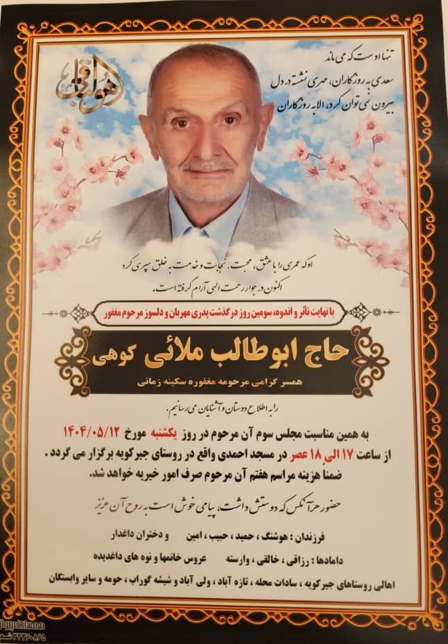 پدرِ آقای حبیب ملائی کوهی به دیدار حق شتافت