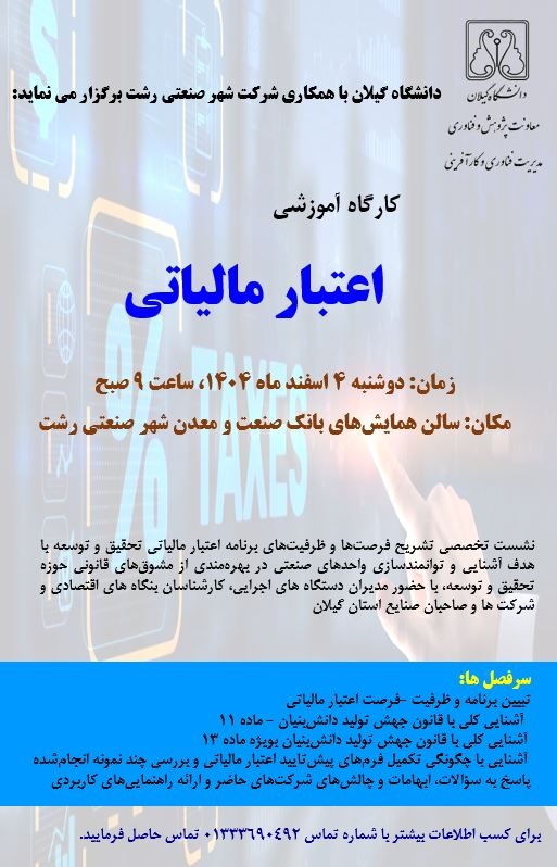 برگزاری کارگاه تشریح فرصت‌ها و ظرفیت‌های برنامه اعتبار مالیاتی قانون جهش تولید دانش بنیان