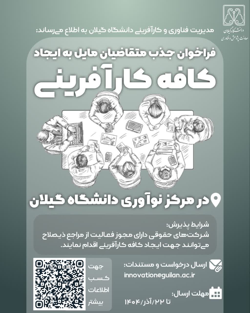 قابل توجه متقاضیان مایل به ایجاد کافه کارآفرینی در دانشگاه گیلان