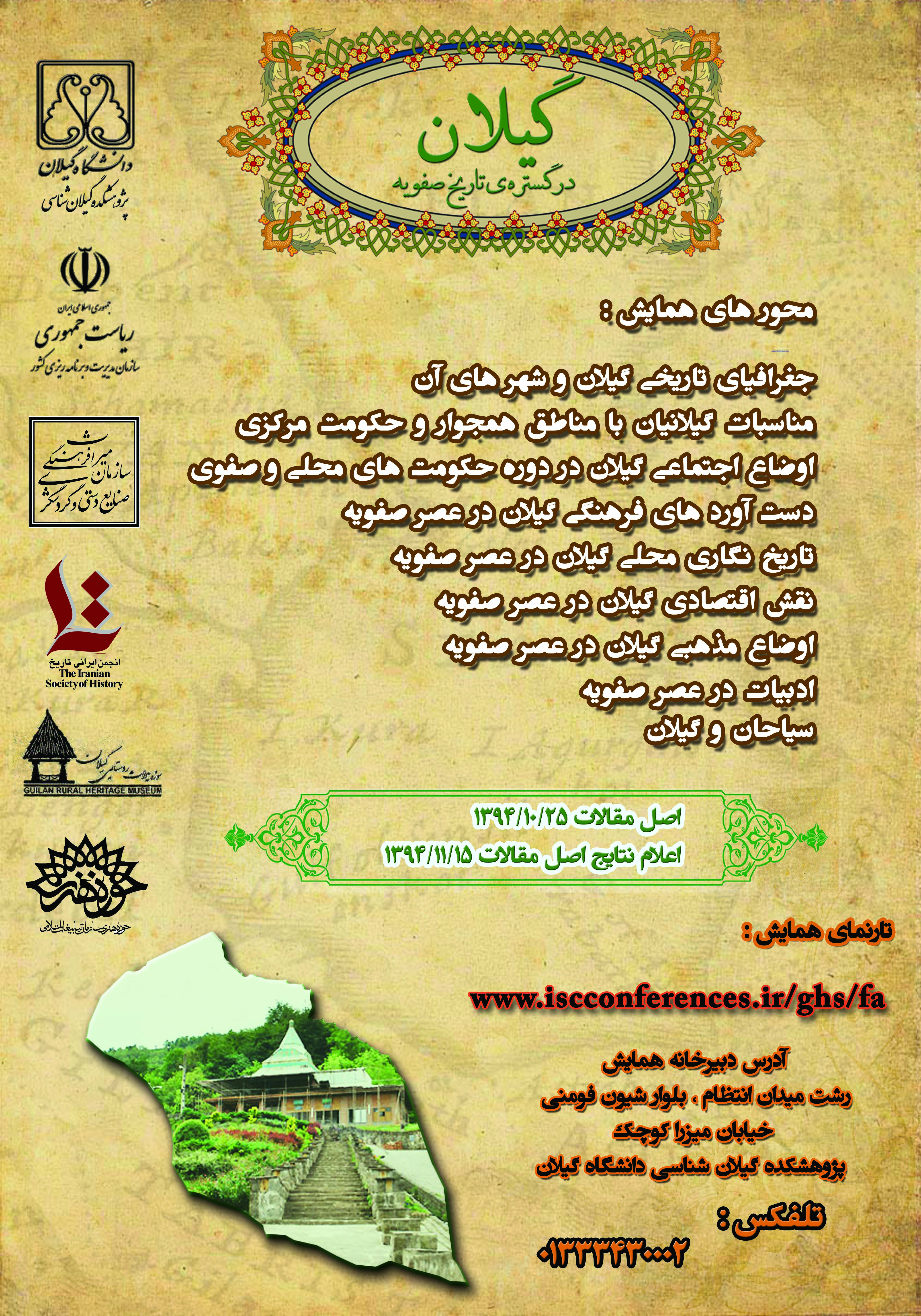 گیلان همواره در طول تاریخ یکی از مناطق مهم و تاثیر گذار درتاریخ ایران بوده است. اما هم زمان با ظهور صفویان به جهت موقعیت خاص جغرافیایی، اقتصادی،فرهنگی و مذهبی بر اهمیت و اعتبار آن افزوده شد به گونه ای که در نظام ایالات عصرصفویه از اهمیت خاصی برخوردار گشت. ریشه های روابط صفویان با گیلانیان به مهاجرت اسماعیل میرزا به گیلان و حضور شیخ زاهد درگیلان باز می گردد. حضور سیاسی صفویان بر گیلان موجب ارتباط جهانی این سرزمین با جهان غرب شد و مسیر تجاری غرب با ایران گشوده شد. با توجه به این مقدمه پژوهشکده گیلان شناسی دانشگاه گیلان در نظر دارد همایش گیلان در گستره تاریخ صفویه را در تاریخ 6 اسفند ماه سال جاری در دانشگاه گیلان برگزار نماید. محور های همایش: جغرافیای تاریخی گیلان و شهر های آن مناسبات گیلانیان با مناطق همجوار و حکومت مرکزی سیاحان و گیلان اوضاع اجتماعی گیلان در دوره حکومت های محلی و صفویه نقش اقتصادی گیلان در عصر صفویه اوضاع مذهبی گیلان در عصر صفویه ادبیات در عصر صفویه دست آورد های فرهنگی گیلان در عصر صفویه تاریخ نگاری محلی گیلان در عصر صفویه ارسال متن کامل مقاله: 25 دی ماه ۱۳۹۴ داوری متن کامل مقاله : تا 15 بهمن۱۳۹۴ نتایج نهایی متن کامل مقاله: 15 بهمن ۱۳۹۴ تماس:01333430002