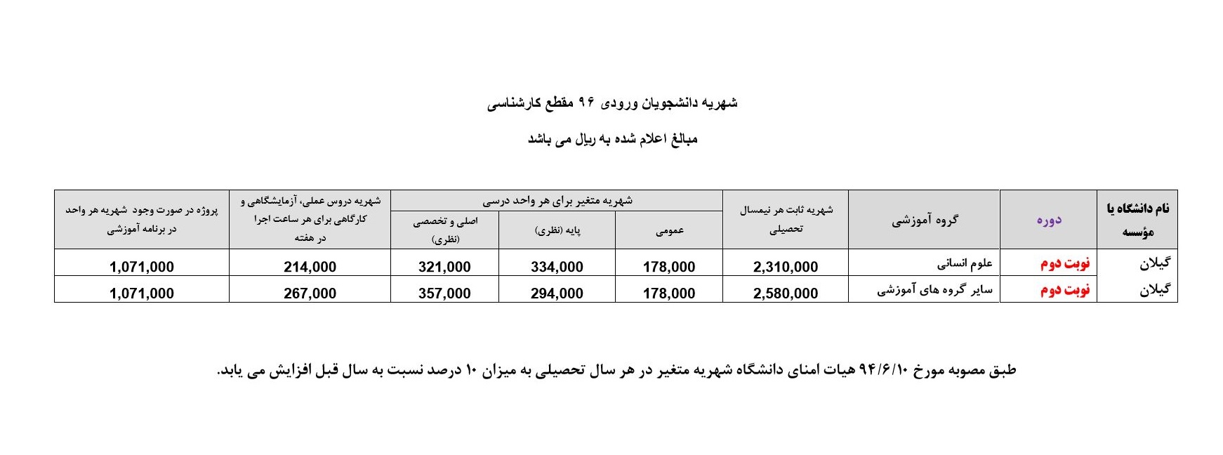 شهریه دانشجویان ورودی 1396 دانشگاه گیلان