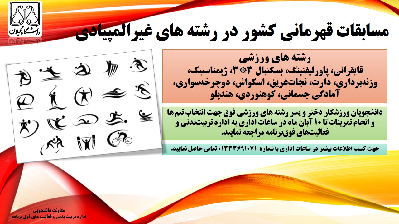 فراخوان انتخاب تیم‌های ورزشی مسابقات قهرمانی کشور در رشته‌های غیرالمپیادی